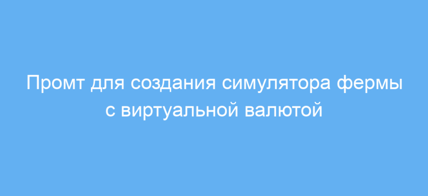Этот промт предназначен для разработчиков, UX-дизайнеров и всех, кто интересуется созданием интерактивных текстовых игр или симуляторов, которые можно запускать через нейросеть. Особенно он полезен тем, кто хочет быстро получить готовый каркас для игры-фермы с виртуальной валютой и элементами геймификации.