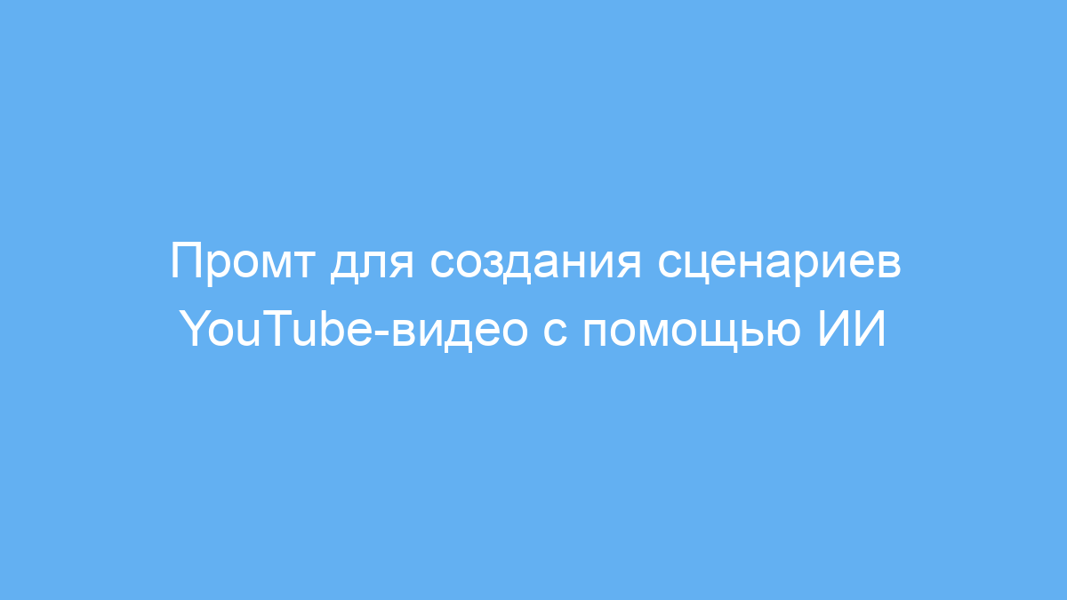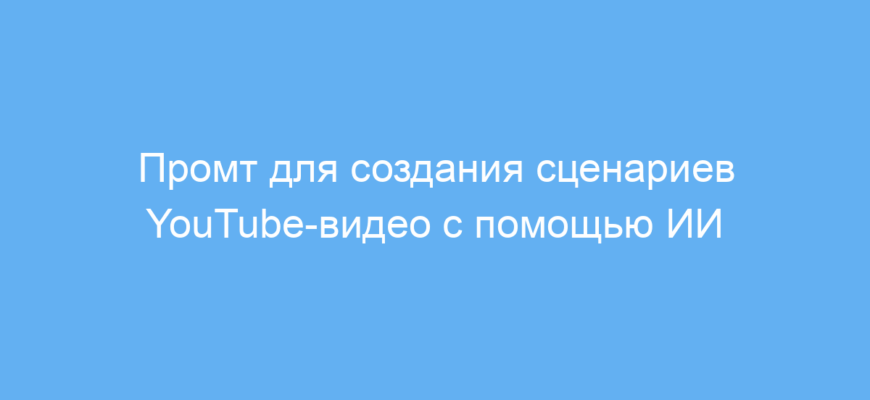 Этот промт предназначен для видеоблогеров, контент-мейкеров и маркетологов, которые работают с платформой YouTube и хотят быстро создать качественный сценарий для своих видео. Он поможет сгенерировать идеи и детализированный план ролика без лишних усилий и долгих размышлений.