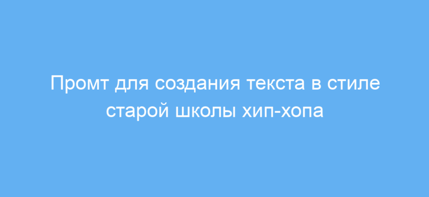 Этот промт помогает оживить тексты о хип-хоп культуре старой школы и погрузиться в атмосферу жанра с его историей, битами и легендами. Он облегчает создание живых и выразительных текстов или диалогов, которые можно использовать для творчества, блогов, презентаций и развлечений.