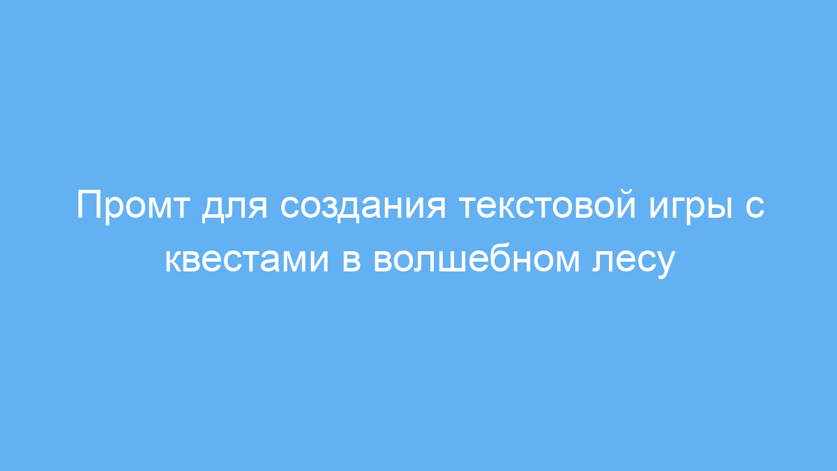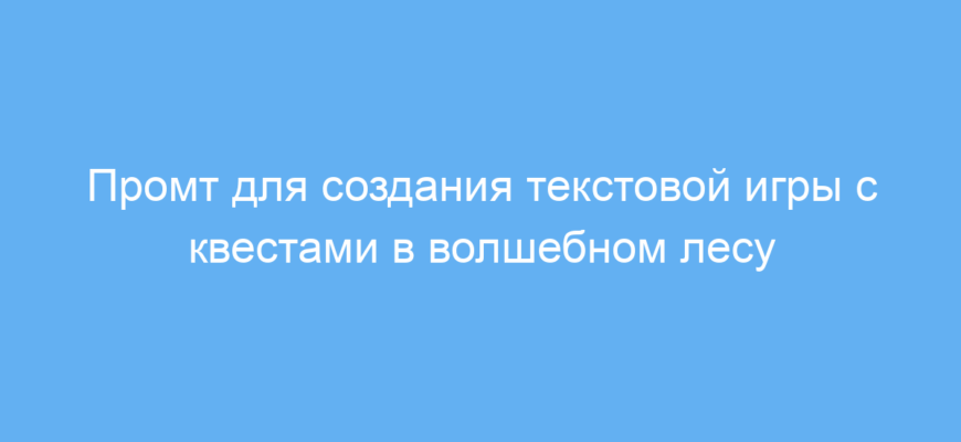 Используя промт, нейросеть берет на себя роль менеджера квестов в игре «Потерянный в заколдованном лесу». Она ведет пользователя по сюжету, предлагает несколько вариантов выбора, учитывает изменения времени суток и влияния решений на дальнейшее путешествие. Это позволяет создавать живые, меняющиеся истории без необходимости самому прописывать каждый шаг.