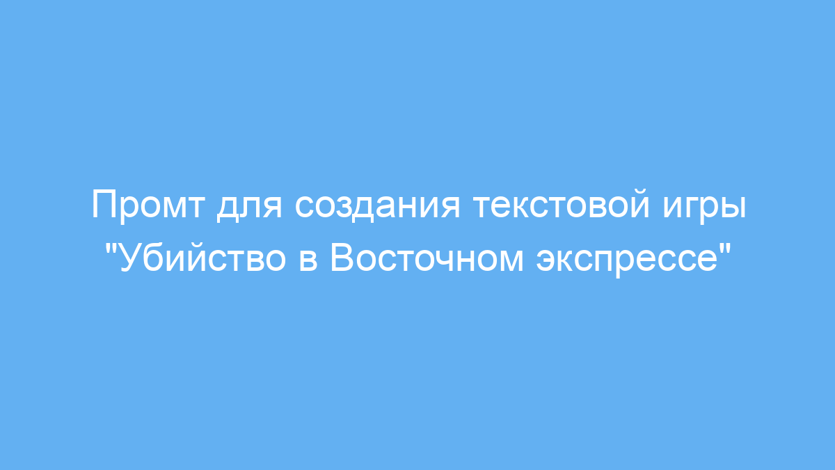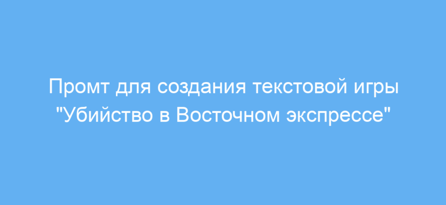Этот промт создан для разработчиков интерактивных текстовых игр, писателей и ведущих онлайн-сессий, которые хотят погрузить игроков в атмосферу классического детектива «Убийство в Восточном экспрессе». С его помощью легко создавать пошаговые приключения с выбором, которые вовлекают игроков в процесс раскрытия загадочного преступления.