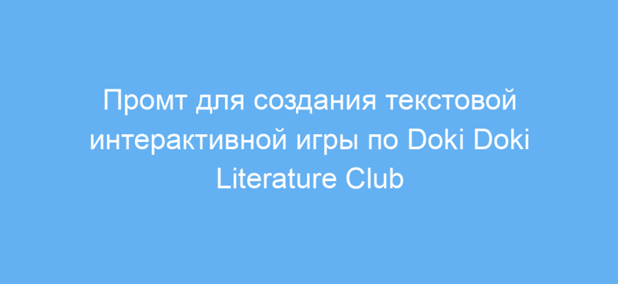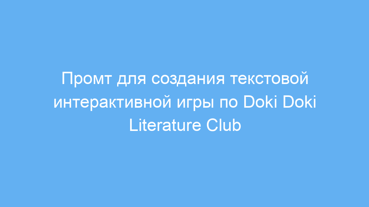 Этот промт значительно ускорит процесс создания текстовой игры с глубоким психологическим сюжетом, с вариативными развилками и насыщенными описаниями, как в оригинальной Doki Doki Literature Club. Он поможет сохранить единый стиль и настроение, добавить элементы хоррора и философии, при этом облегчая работу сценариста или разработчика интерактивной истории.