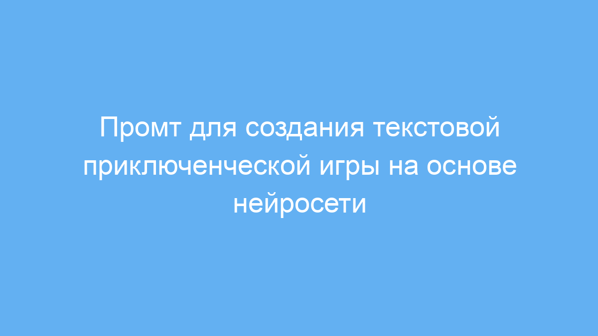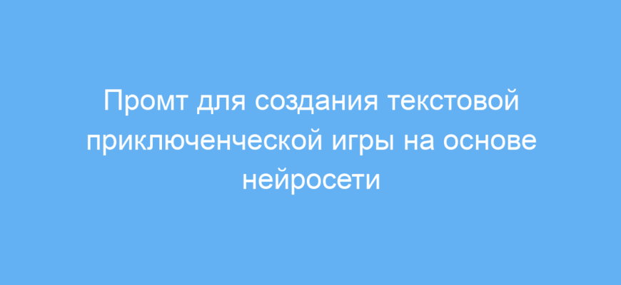 Этот промт предназначен для тех, кто хочет создать интерактивную текстовую приключенческую игру с помощью нейросети. Он подходит авторам, разработчикам игр, преподавателям и всем, кто заинтересован в создании увлекательного повествования, где игрок самостоятельно выбирает направление развития сюжета.