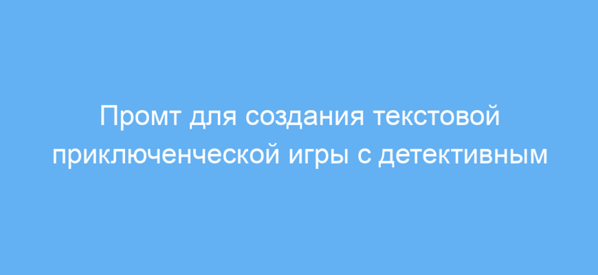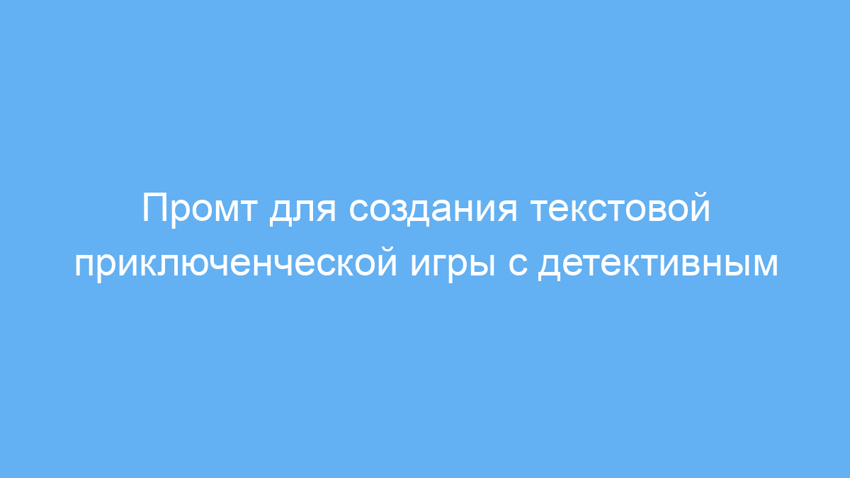 Этот промт предназначен для разработчиков, сценаристов и энтузиастов нейросетей, которые хотят быстро создать полноценную текстовую приключенческую игру с богатым описанием, интересными диалогами и детективным сюжетом. Он помогает автоматизировать процесс генерации игрового контента, упрощая создание сцен, повествования и визуализаций. Такой промт особенно полезен, если нужно разрабатывать интерактивные истории с выбором игроком действий и диалогов, а также добавлять иллюстрации для усиления атмосферы.