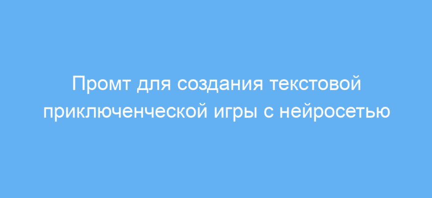 Обратите внимание, что для полноценной работы промта требуется точное следование правилам и формату вывода. Желательно использовать нейросеть с хорошей памятью контекста, чтобы она удерживала состояние игры между ходами.