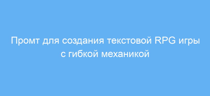 Этот промт значительно ускорит создание и проведение кастомной текстовой RPG с глубокими механиками и адаптацией под ваши предпочтения. Он упрощает работу с нейросетью, организует процесс создания персонажа и движка игры, делая опыт максимально увлекательным и персонализированным.