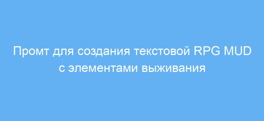 Этот промт предназначен для разработчиков и креативщиков, которые хотят быстро создать простой текстовый RPG в стиле MUD с выживанием. Он поможет сэкономить время на проработку сюжета, мира и игровых механик, автоматически генерируя игровые описания, персонажей и ситуации. Такой подход полезен для обучения, прототипирования игр и развлечения.
