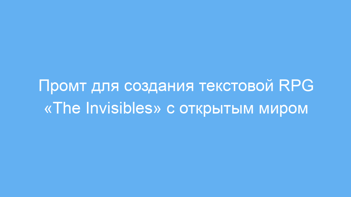 Этот промт значительно ускоряет создание сложной и насыщенной текстовой RPG с большим открытым миром и глубокой сюжетной проработкой. Он помогает структурировать игровой процесс, добавить динамические диалоги и управление ресурсами, что облегчает работу программистам и сценаристам. В итоге вы получаете интерактивное приключение с уникальной атмосферой и возможностью выбора, не тратя время на низкоуровневую логику.