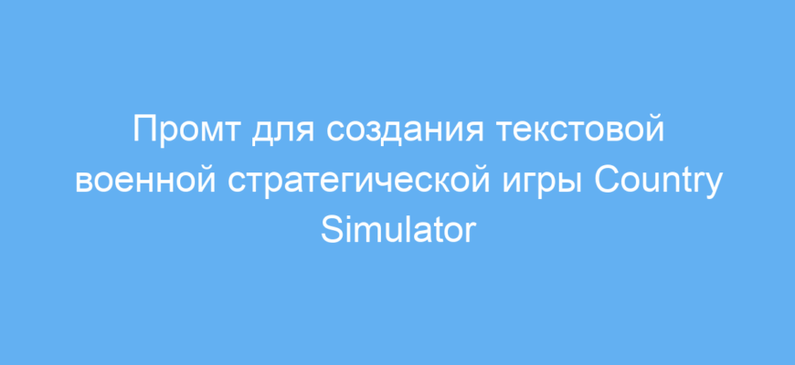 Принцип работы промта основан на предоставлении нейросети исходных условий: стартовые параметры страны, основные игровые показатели и правила взаимодействия. Необходимо лишь вести диалог с игрой, используя доступные команды: общение с другими странами и захват территории. Нейросеть отслеживает состояние игры, обновляет статистику и генерирует краткие и понятные отчёты после каждого действия.