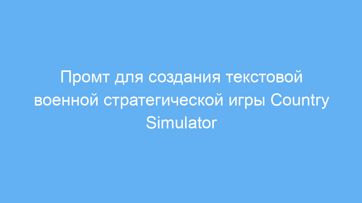 Этот промт создан для разработчиков, сценаристов и создателей чат-ботов, которые хотят быстро сгенерировать интерактивную текстовую военную стратегическую игру. Использование промта помогает автоматизировать общение с игроком, контролировать игровые параметры и управлять логикой игрового процесса. Он решает задачи моделирования сложной игровой механики без необходимости программирования — достаточно задавать команды и получать адекватные игровые ответы.