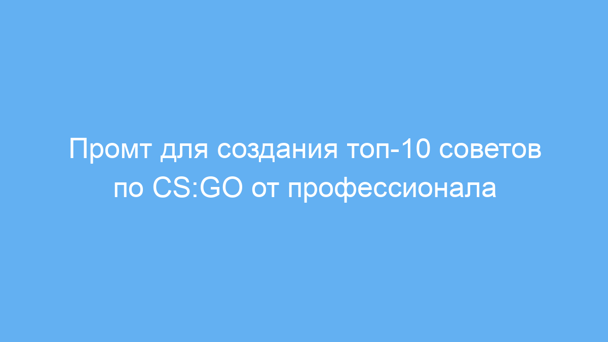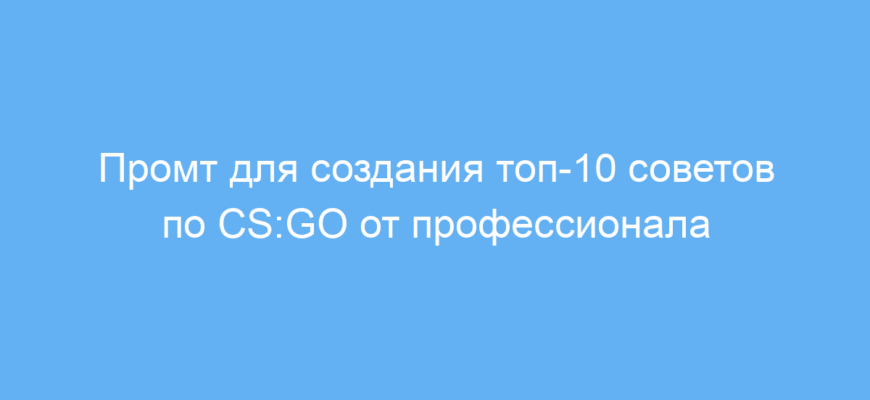 Этот промт адресован игрокам в CS:GO — особенно начинающим, которые хотят улучшить свои навыки и приблизиться к уровню профессионалов. Он поможет быстро получить структурированные и ценные советы по тактике, приёмам и общему улучшению игры.