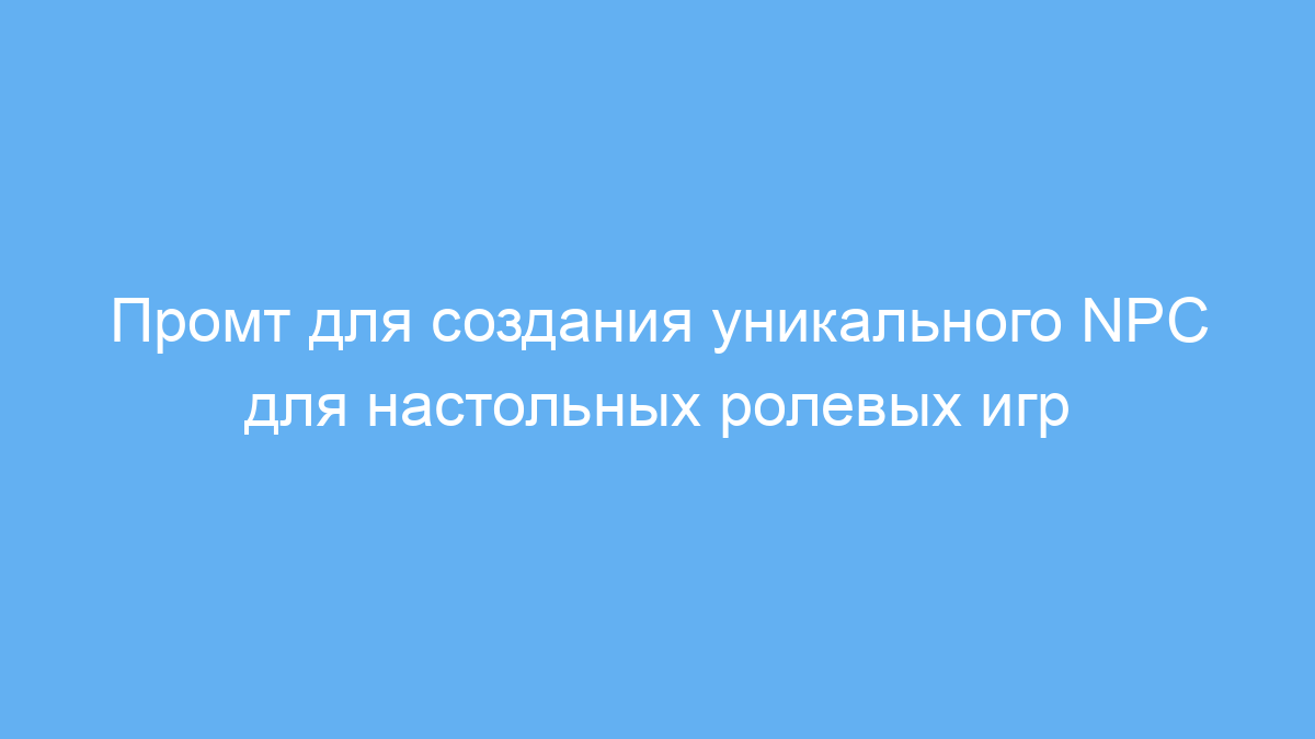 Использование этого промта существенно упрощает и ускоряет процесс создания сложных и атмосферных NPC для разных систем настольных ролевых игр. Вы экономите время, получаете детализированных персонажей с глубокой проработкой и возможностью интеграции в сюжет. Это отличный помощник как для новичков, так и для опытных мастеров, стремящихся разнообразить и обогатить игровое пространство.