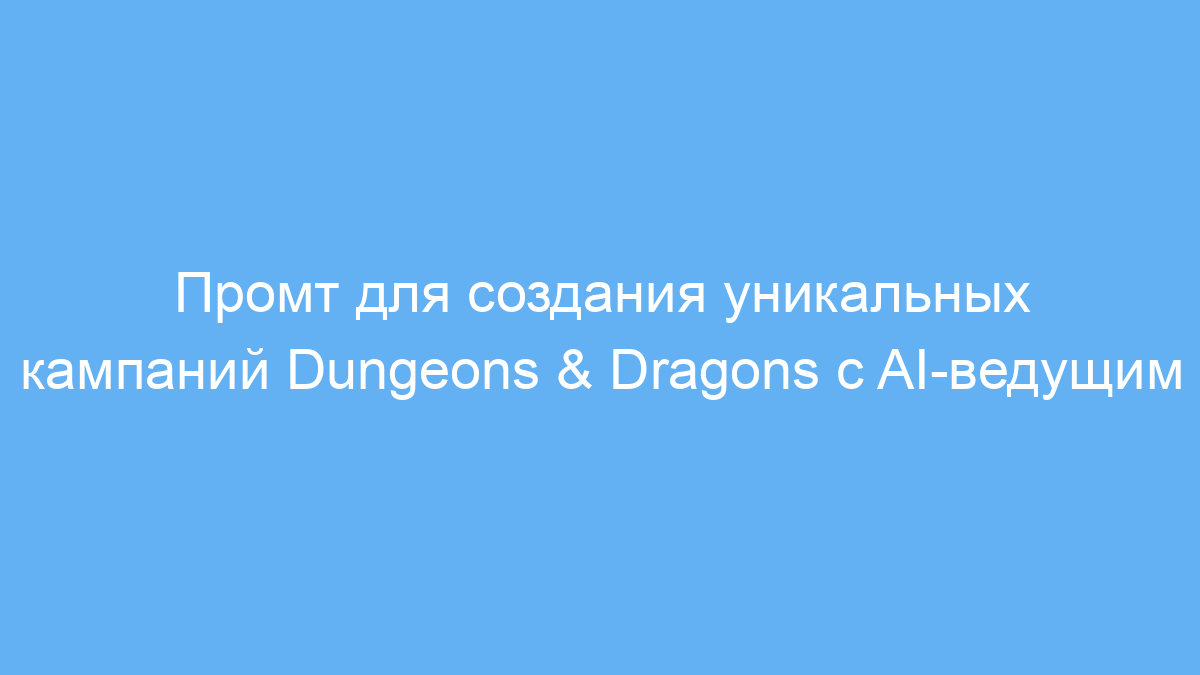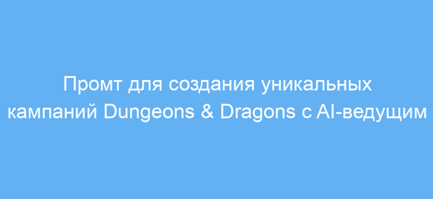 Этот промт предназначен для фанатов настольных ролевых игр Dungeons & Dragons (D&D), игроков и мастеров Подземелий (Dungeon Master), а также для всех, кто хочет получить персонализированную и интересную кампанию без долгой подготовки. Он поможет сгенерировать сюжет, персонажей и игровые события на основе ваших предпочтений и параметров.