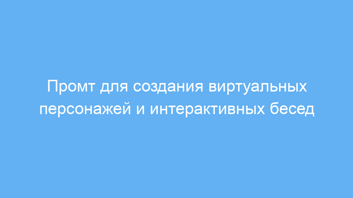 Этот промт позволяет быстро и удобно создавать живые, реалистичные диалоги с виртуальными персонажами. Он расширяет возможности для учебы, творчества и развлечений, делая общение с нейросетью более насыщенным и гибким. Вы сможете легко менять образы и управлять беседой, что экономит время и повышает эффективность взаимодействия.