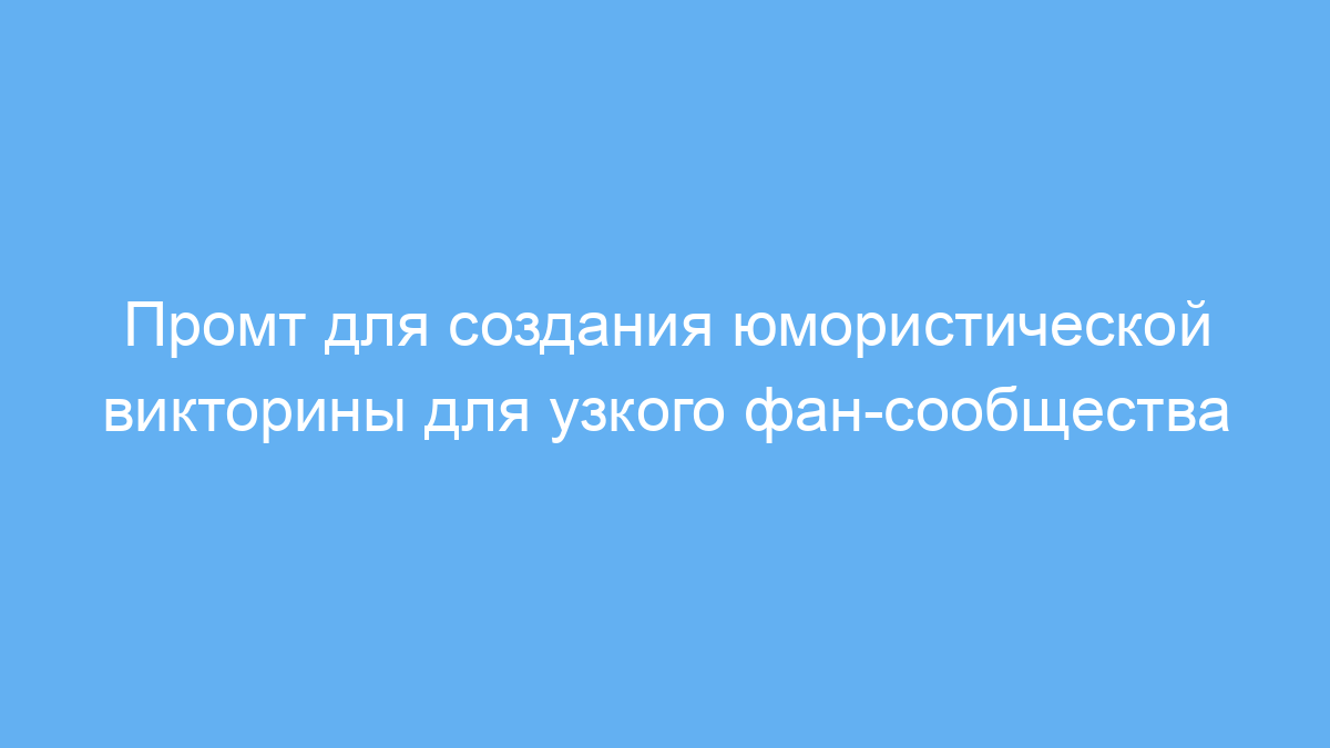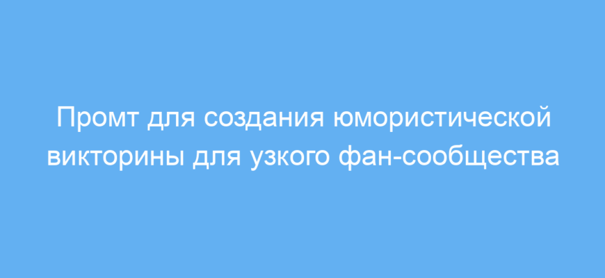 Данный промт предназначен для тех, кто хочет создать уникальную и забавную викторину для узкого тематического фан-сообщества. Например, администраторы форумов, создатели развлекательных ботов или авторы фан-сообществ могут использовать его для повышения вовлечённости участников и создания весёлой атмосферы.