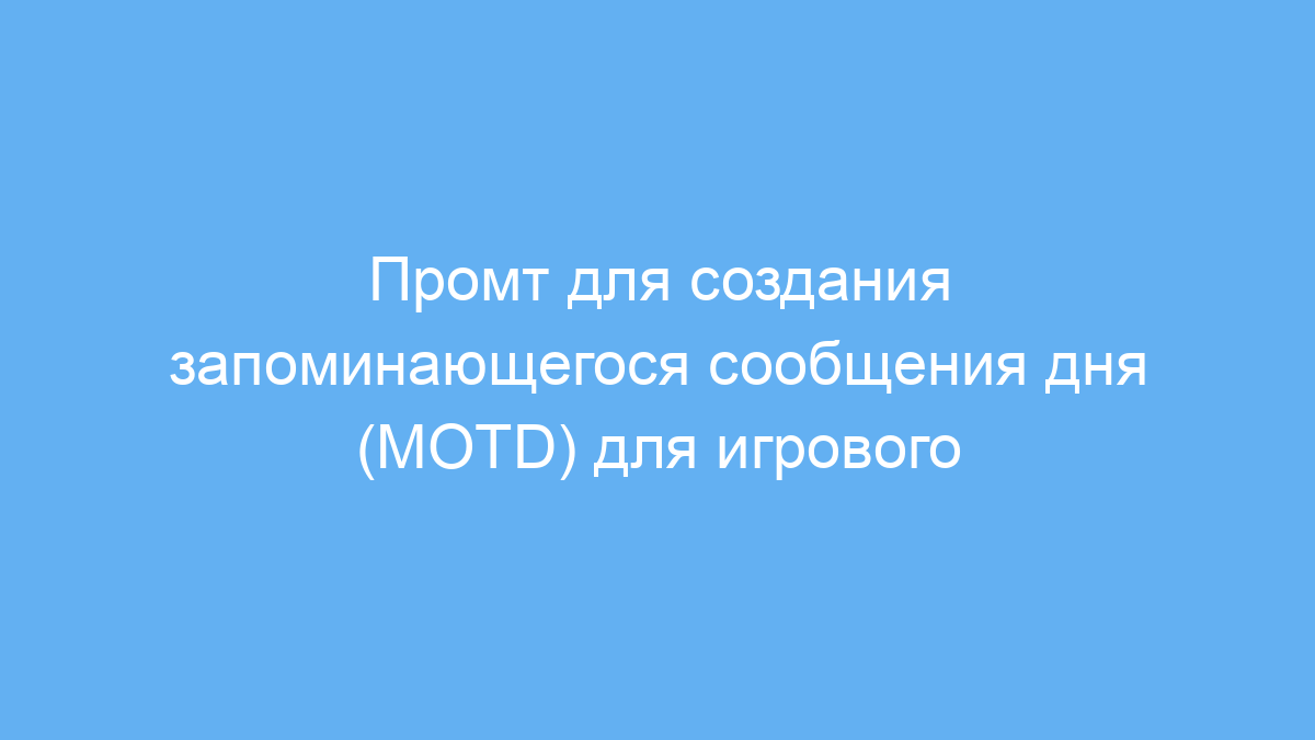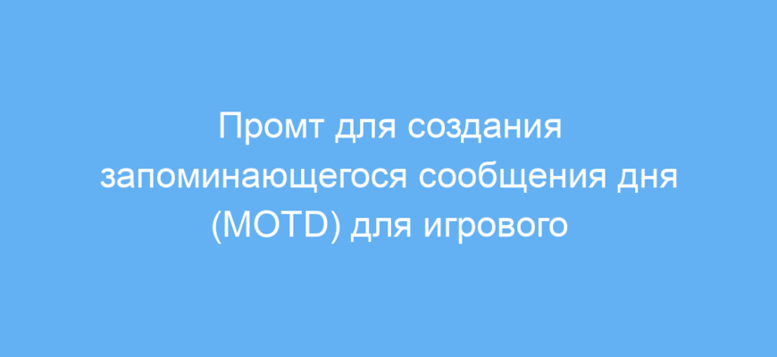 Используя этот промт, вы экономите время на создание качественного и интересного сообщения дня для игрового сервера. Нейросеть быстро генерирует яркие и актуальные тексты, которые легко адаптировать под любой стиль. Это упрощает поддержание активности и увлечённости игроков без дополнительных усилий.