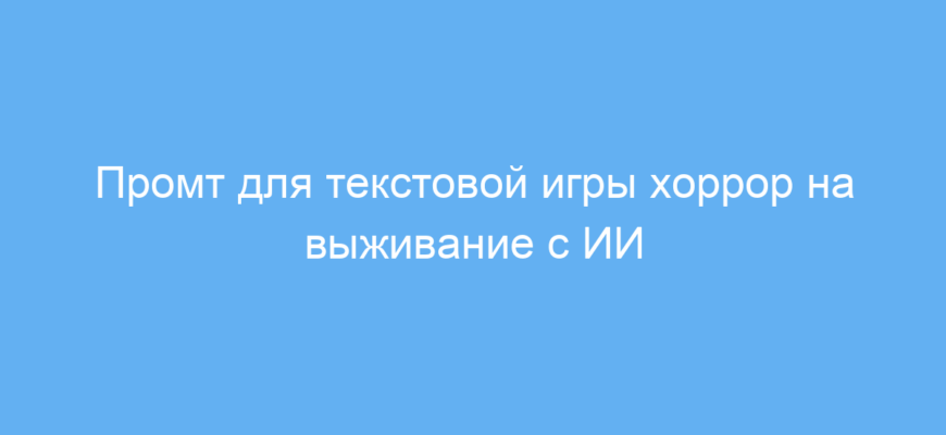 Этот промт значительно сокращает время на создание текстовой игры в жанре хоррор на выживание. Он обеспечивает продуманную систему управления параметрами и взаимодействия с игроком, делая игровой процесс органичным и увлекательным без лишних усилий с вашей стороны.