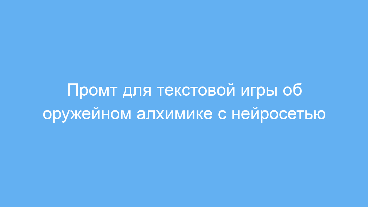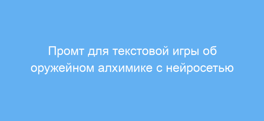 Этот промт предназначен для разработчиков и энтузиастов, которые хотят создать интерактивную текстовую игру с участием нейросети. В ней игрок играет роль оружейного алхимика, цель которого — создать самое дорогое оружие за ограниченный срок. Промт помогает моделировать игровой процесс с разными атрибутами, влияющими на результат, и управлять ходом игры на основе заданных правил.