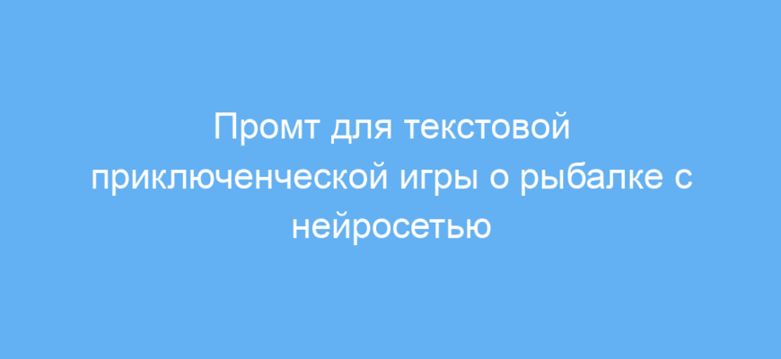 Работает промт так: сначала пользователь выбирает водоём, затем поочередно принимает решения, влияющие на ход игры. Нейросеть описывает последствия, сообщает о пойманной рыбе с подробной информацией и предлагает варианты дальнейших действий.