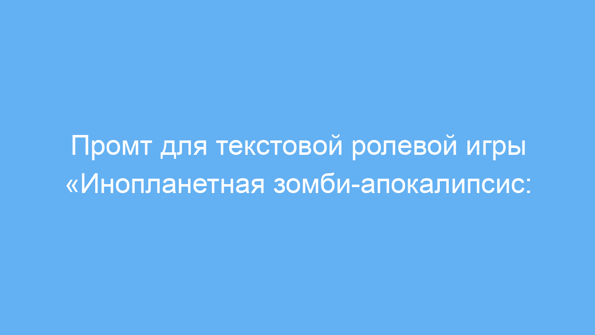 Этот промт создан для любителей интерактивных текстовых ролевых игр и тех, кто хочет использовать нейросети для создания захватывающих игровых сценариев. Он помогает быстро запустить увлекательное приключение в жанре зомби-апокалипсиса с инопланетными элементами и атмосферой Токио. Промт организует игровой процесс, вводит героиню и ключевые игровые механики, облегчая взаимодействие между игроком и нейросетью.