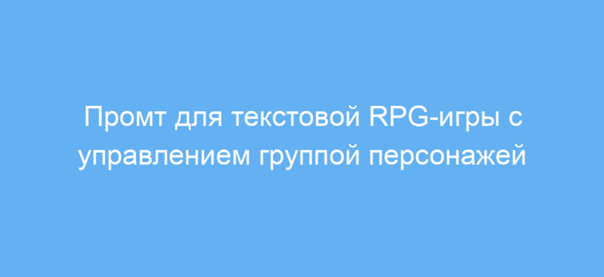 Использование данного промта позволяет эффективно создавать живую, пошаговую текстовую RPG с управлением многими персонажами одновременно. Это экономит время, упрощает разработку сценариев и позволяет сфокусироваться на сюжете и взаимодействии, не отвлекаясь на мелкие детали управления каждым героем.