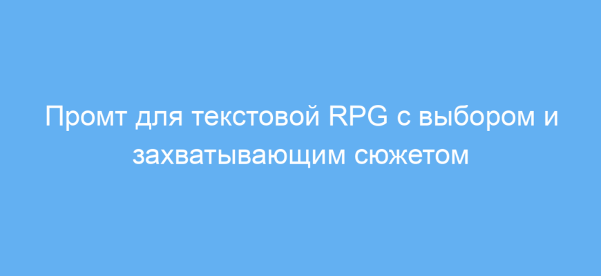 Использование этого промта значительно облегчает создание живой, интерактивной текстовой RPG с элементом выбора, помогая быстро сформировать начало сюжета и удержать внимание игрока. Он экономит время в разработке диалогов, делает повествование более структурированным и понятным.