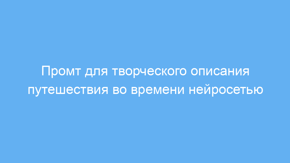 Этот промт подходит для писателей, педагогов, студентов и всех, кто хочет развить воображение и навыки творческого письма. Он помогает генерировать интересные и детализированные описания, основанные на необычном сюжете — перемещении во времени и пространстве без подготовки.