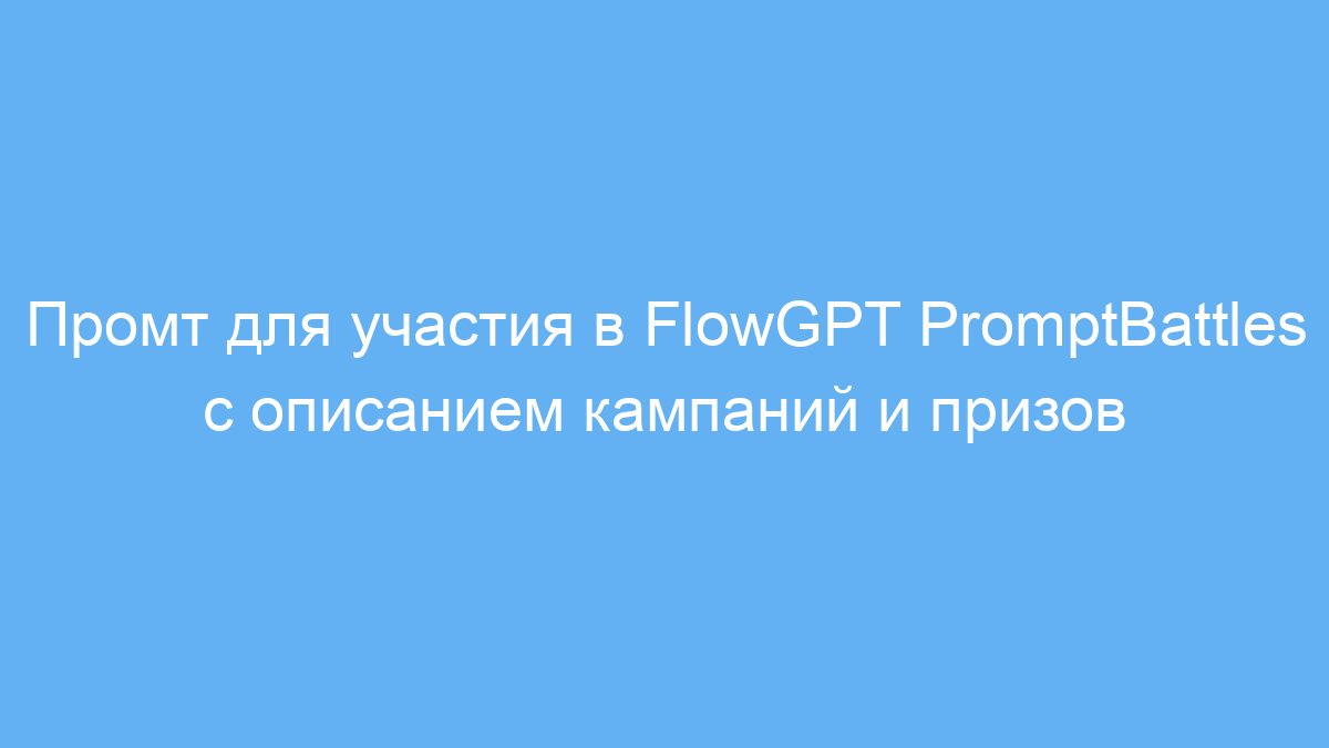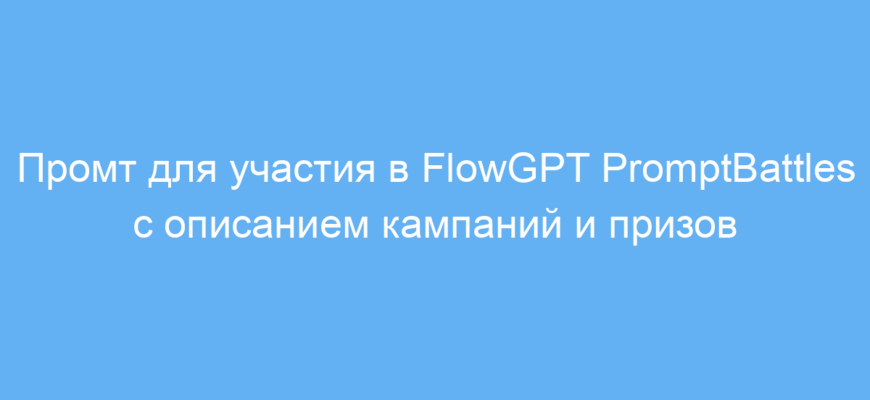 Добро пожаловать на FlowGPT PromptBattles! В этом мероприятии представлены три основные кампании с уникальными возможностями и призами.
