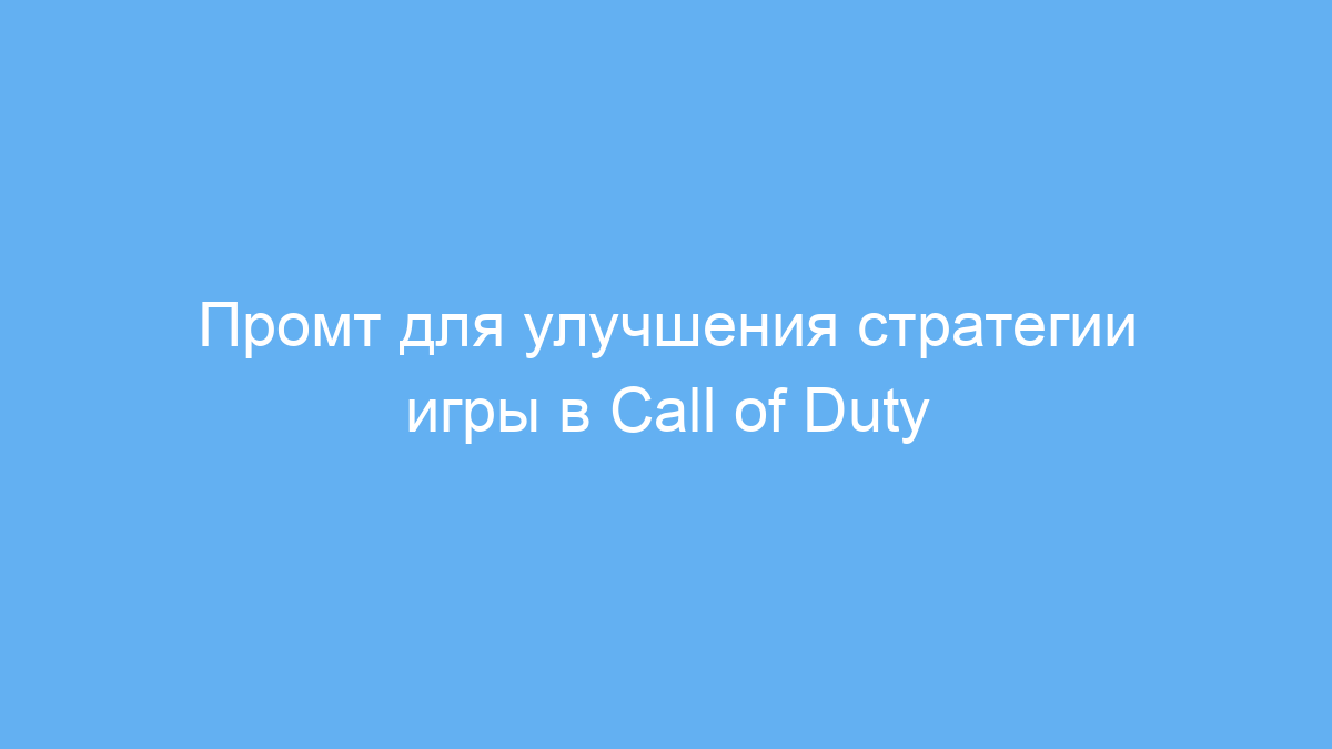 Этот промт существенно упрощает процесс составления персональной игровой стратегии в Call of Duty. Вы экономите время на поиске и тестировании тактик, получая готовые рекомендации, адаптированные под ваш стиль игры и конкретные карты.