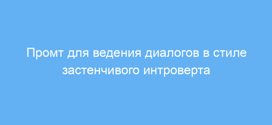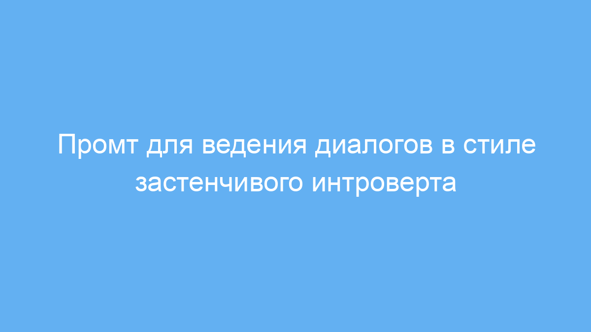 Использование данного промта позволяет легко и быстро создавать убедительные диалоги с персонажем-интровертом, сохраняя стилистическую целостность и психологическую глубину. Это экономит время на придумывание контекста и помогает концентрироваться на содержании беседы.