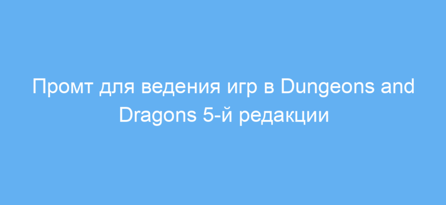 Данный промт значительно упрощает организацию и проведение игр в Dungeons and Dragons 5-й редакции с помощью нейросети. Он позволяет автоматизировать роль мастера подземелий, делать игру живой и логичной, а также помогает новичкам освоить правила через практику. Это экономит время и позволяет играть в любое удобное время без поиска живого ведущего.