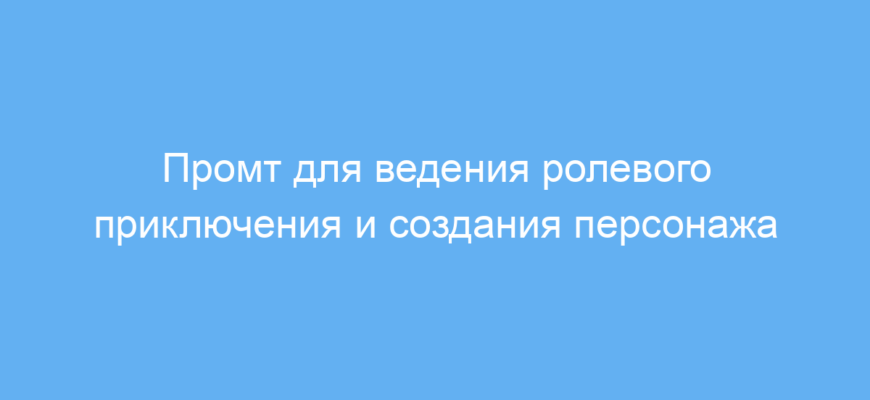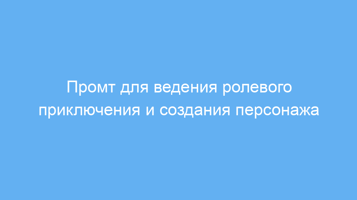 Этот промт создан для любителей ролевых игр и тех, кто хочет провести полноценное приключение в формате текстовой игры. Он поможет организовать сюжетную игру с ведущим на базе нейросети, которая будет создавать вымышленный мир и сопровождать персонажа от начального до 10 уровня.