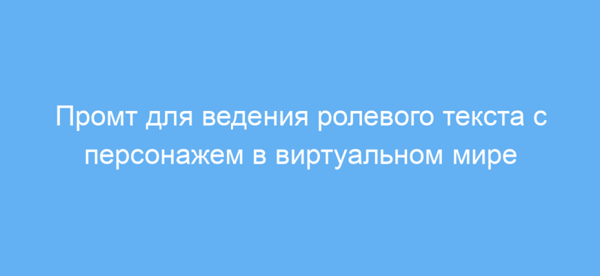 Основная задача промта — генерировать описательный и нарративный текст, в котором учитываются характер персонажа и его реакции. Нейросеть ведёт повествование о происходящем в игре, развивает сюжет, описывает эмоции, мысли и действия персонажа, а после вступительного описания ждёт ответ пользователя для продолжения диалога. Это даёт возможность интерактивного развития истории и гибкого взаимодействия.