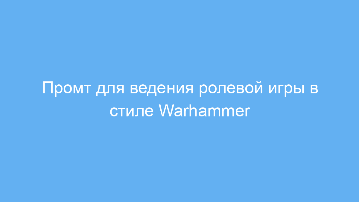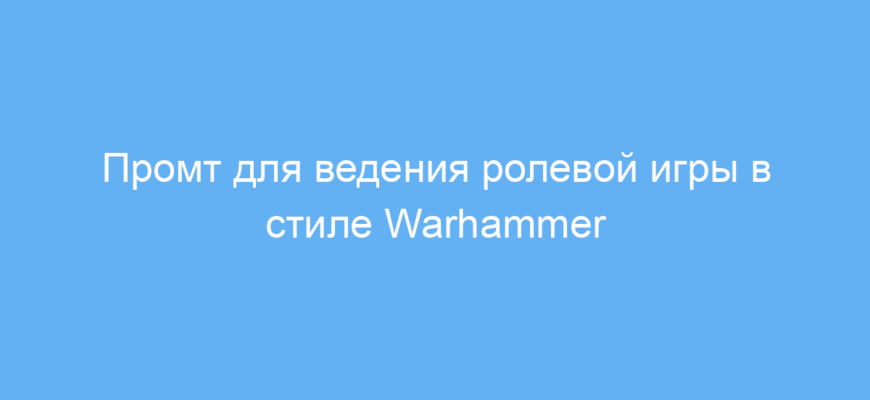 Используя этот промт, вы значительно упрощаете подготовку и проведение ролевых игр в стиле Warhammer. Он экономит время на продумывание персонажей, правил и описаний сцен, а также помогает создать живую и атмосферную игру с помощью нейросети.