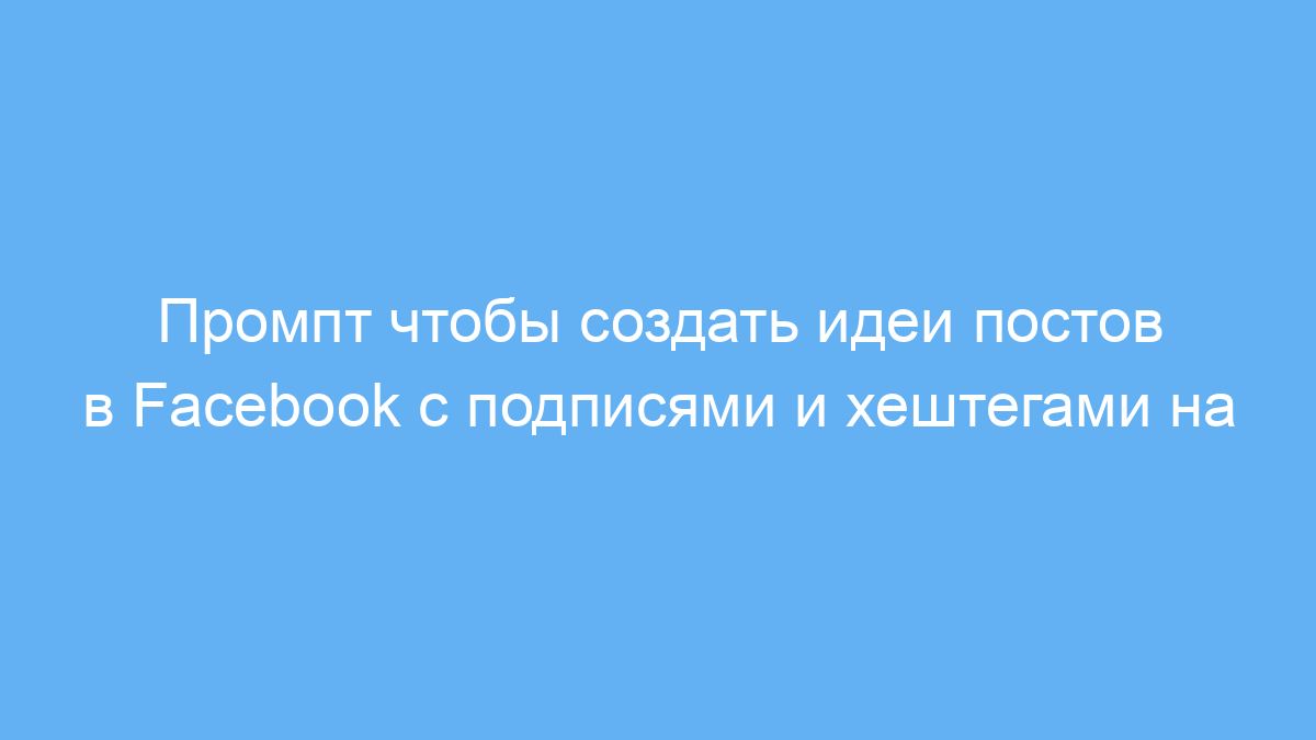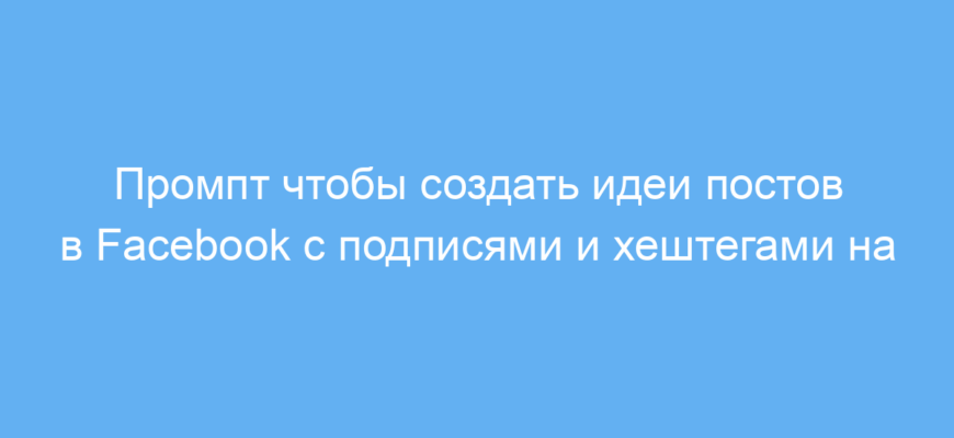 Этот промпт предназначен для маркетологов, SMM-специалистов, копирайтеров и владельцев бизнеса, которым нужно быстро придумать идеи для постов в Facebook. Он помогает сократить время на генерацию контента и сделать публикации более привлекательными за счёт готовых подписей и хештегов.