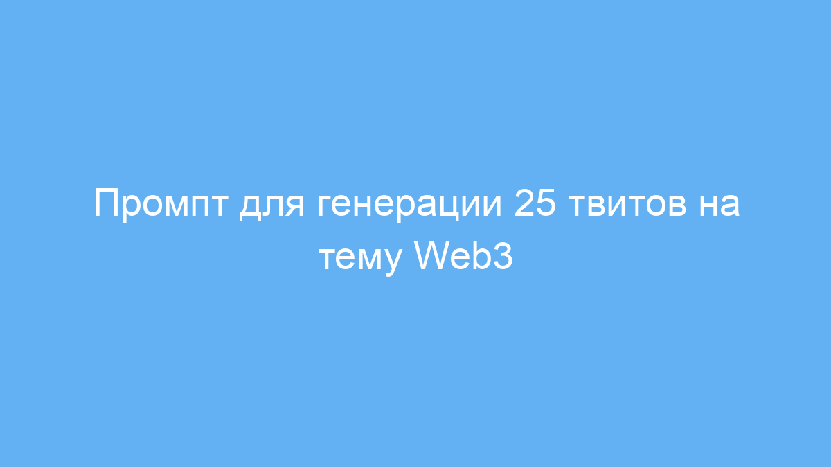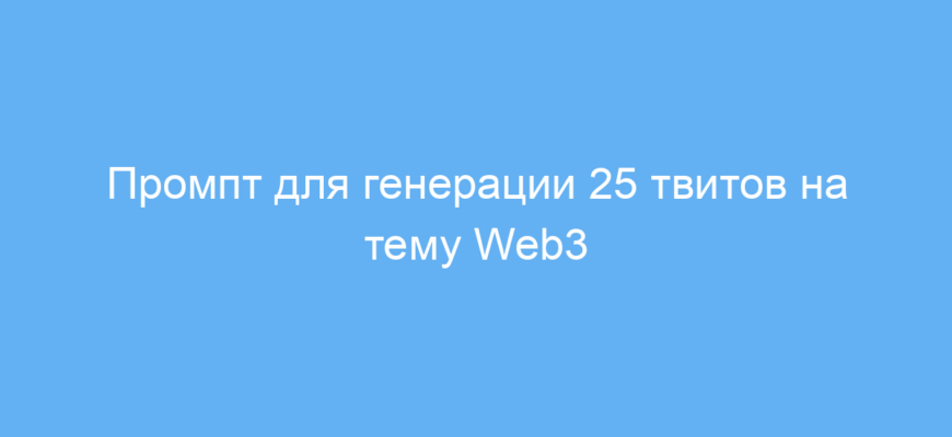 Сгенерируй 25 твитов на тему Web3, имитируя стиль человека, глубоко изучающего криптовалюты, децентрализованные финансы и NFT. |