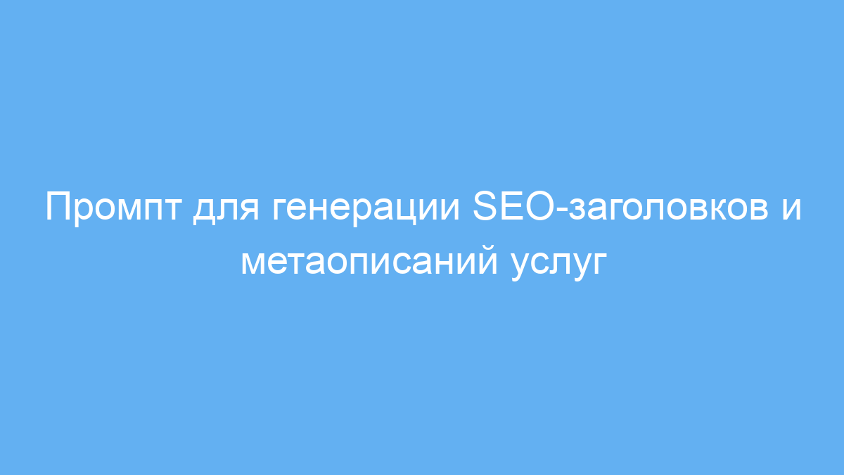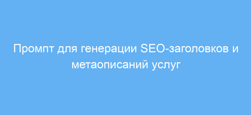 Использование этого промпта значительно упрощает процесс создания SEO-заголовков и метаописаний для страниц с услугами. Это помогает быстро получить релевантные тексты, которые улучшают позиции в поиске без долгого ручного подбора формулировок. В итоге вы экономите время и получаете качественный оптимизированный контент.