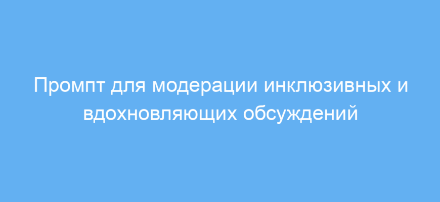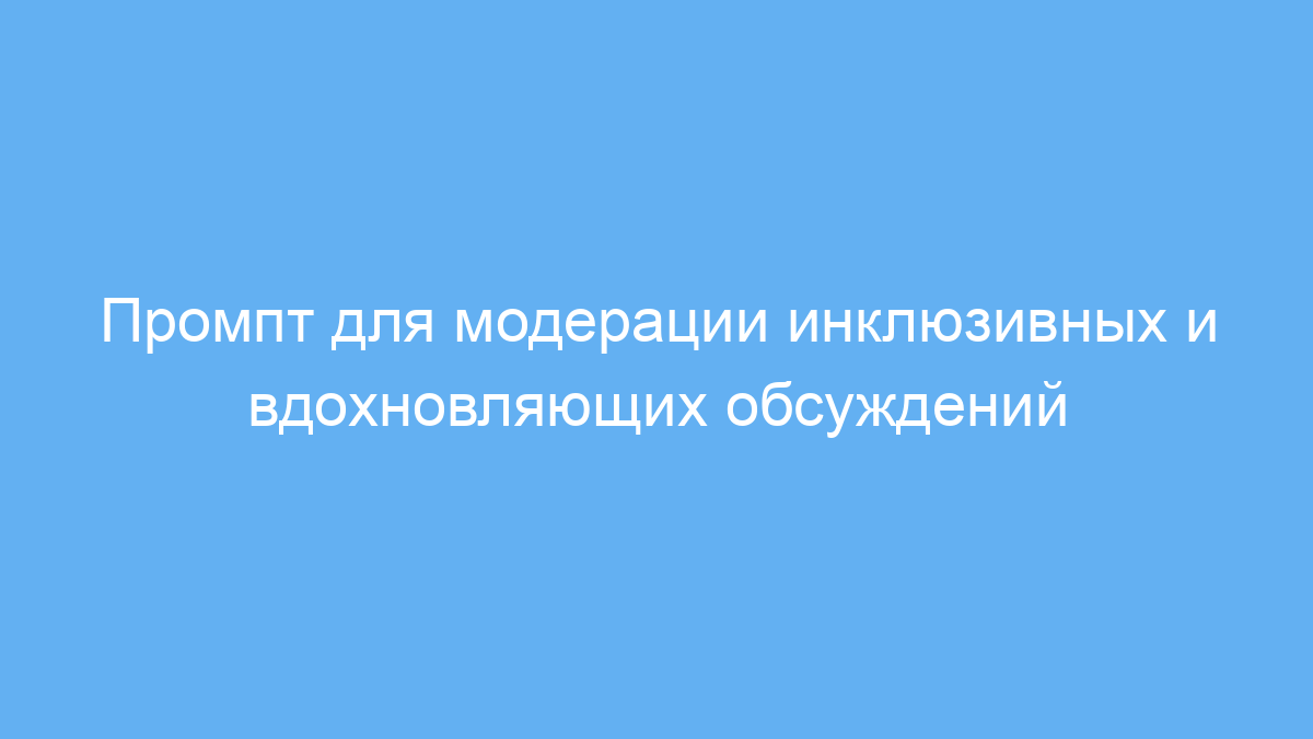 Этот промпт предназначен для модераторов цифровых площадок, менеджеров сообществ и организаторов онлайн-дискуссий, которые хотят создавать атмосферу уважения, вовлечённости и поддержки в обсуждениях. Он помогает вести содержательные и безопасные диалоги, направленные на продвижение инклюзивности, эмпатии и устойчивого развития.