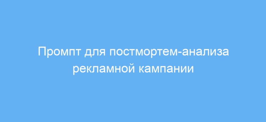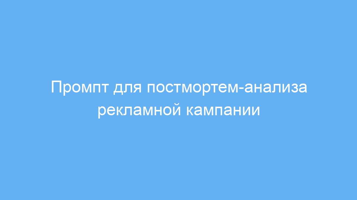 Этот промпт создан для маркетологов, предпринимателей и специалистов, которые хотят глубже понять эффективность своей рекламной кампании. Он помогает провести постмортем-анализ — то есть оценить, что сработало хорошо, какие есть ошибки, неожиданные результаты и какие стратегии можно применить в будущем.
