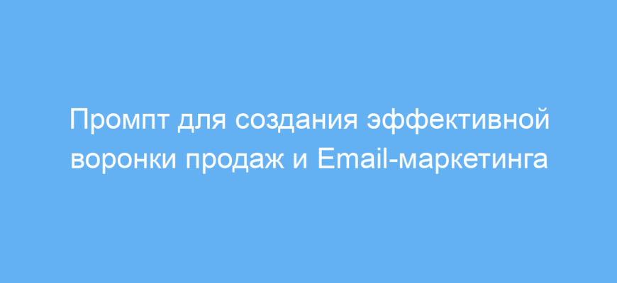 Промпт работает так: вы вводите информацию о своём бизнесе, целевой аудитории и целях, а нейросеть на её основе даёт подробный план по этапам воронки продаж. Включены рекомендации по CRM, тактикам вовлечения, метрикам и примеры писем для разных стадий коммуникации. Всё это оформлено структурировано и понятно.