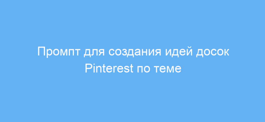 Этот промпт поможет быстро и просто придумать качественные идеи для оформления досок Pinterest. Это сократит время на планирование контента и сделает ваш профиль более привлекательным и структурированным. Благодаря готовым названиям и описаниям вы сможете сразу увеличить вовлеченность аудитории.