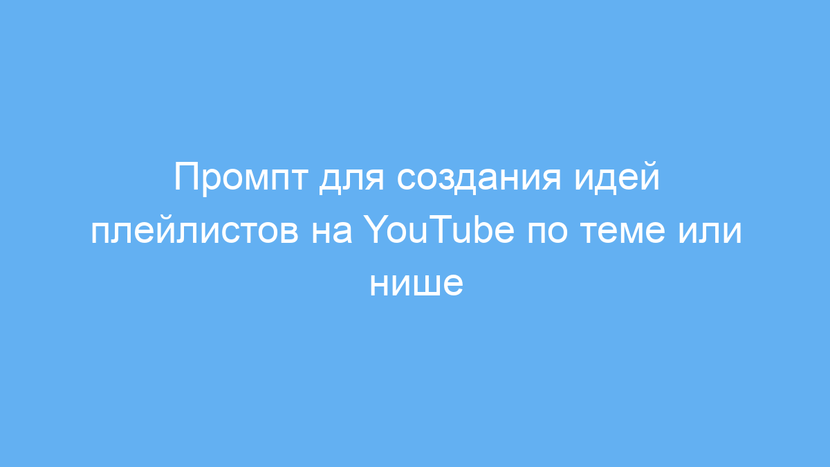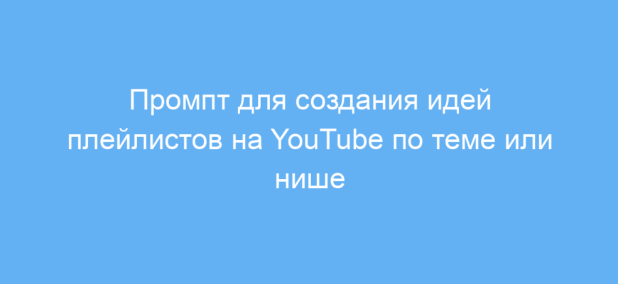Этот промпт предназначен для блогеров, маркетологов, специалистов по контенту и всех, кто работает с YouTube-каналами. Он помогает быстро и легко придумать интересные идеи для плейлистов по заданной теме или нише и оформить их привлекательными названиями и описаниями.