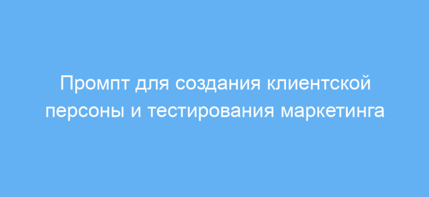 Данный промпт значительно упрощает процесс создания клиентских персон — подробных образов целевой аудитории. Он помогает маркетологам создавать более точные стратегии, экономить время на анализ и получать релевантные ответы, моделируя диалог с реальными клиентами.
