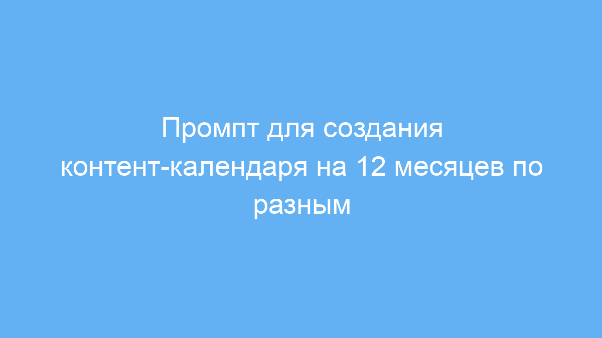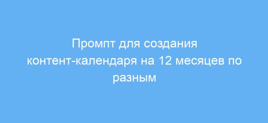 Этот промпт подойдет маркетологам, SMM-специалистам, контент-менеджерам и владельцам бизнеса, которые хотят быстро и эффективно планировать маркетинговый контент на долгий срок. Создание контент-календаря вручную может занимать много времени и вызывать сложности с разнообразием тем и форматов.