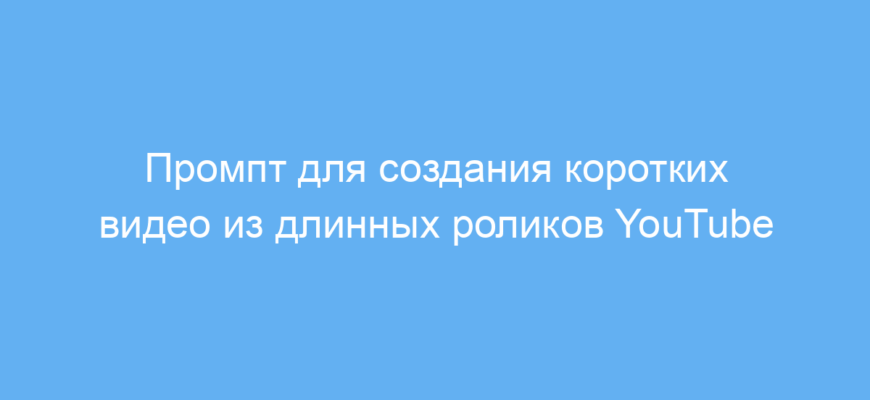 Данный промпт предназначен для создателей контента, маркетологов и SMM-специалистов, которые хотят быстро и эффективно преобразовывать длинные видео с YouTube в короткие, привлекательные ролики для платформ TikTok и Instagram. Он поможет быстро выделить интересные и значимые фрагменты из больших видео, что особенно полезно при работе с образовательным, информационным или развлекательным контентом.