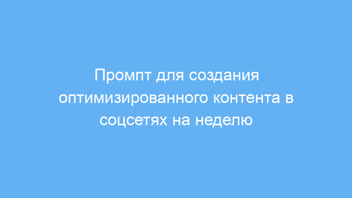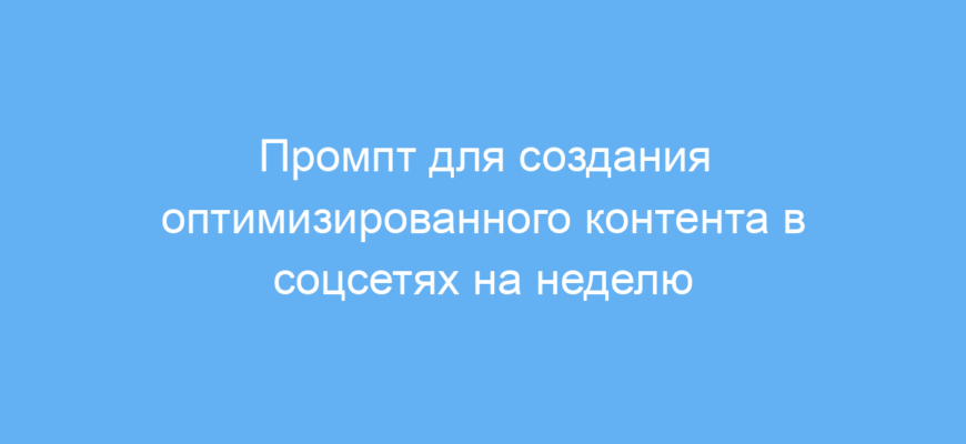 Промпт решает задачу комплексного планирования публикаций на неделю, учитывая особенности каждой соцсети: стиль сообщений, ключевые слова, хэштеги и призывы к действию. Это упрощает работу, экономит время и повышает эффективность продвижения.