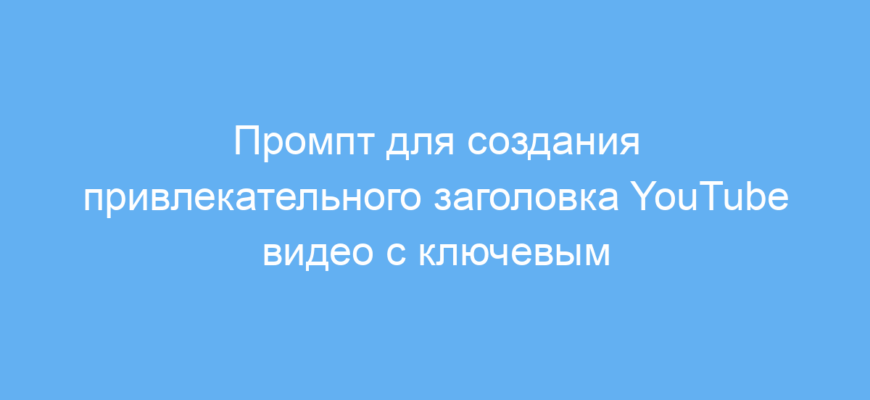 Работает промпт просто: пользователь указывает тему видео и целевое ключевое слово, а нейросеть формирует оптимальный заголовок. Такой заголовок не только привлечёт зрителей, но и повысит видимость видео в выдаче, что поможет увеличить количество просмотров и подписчиков.