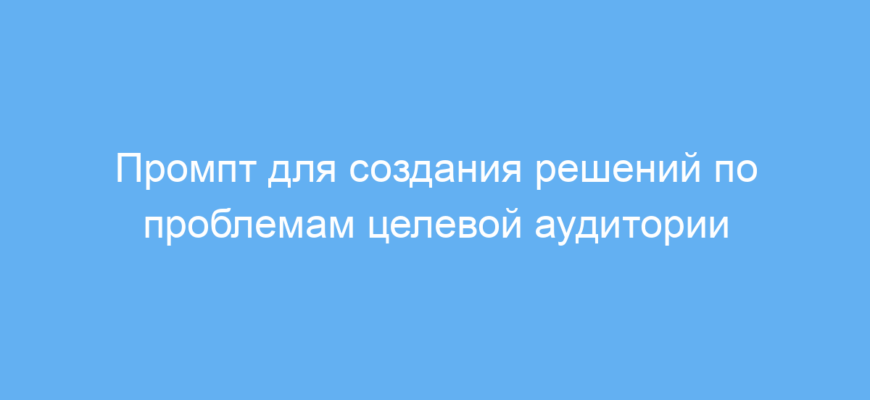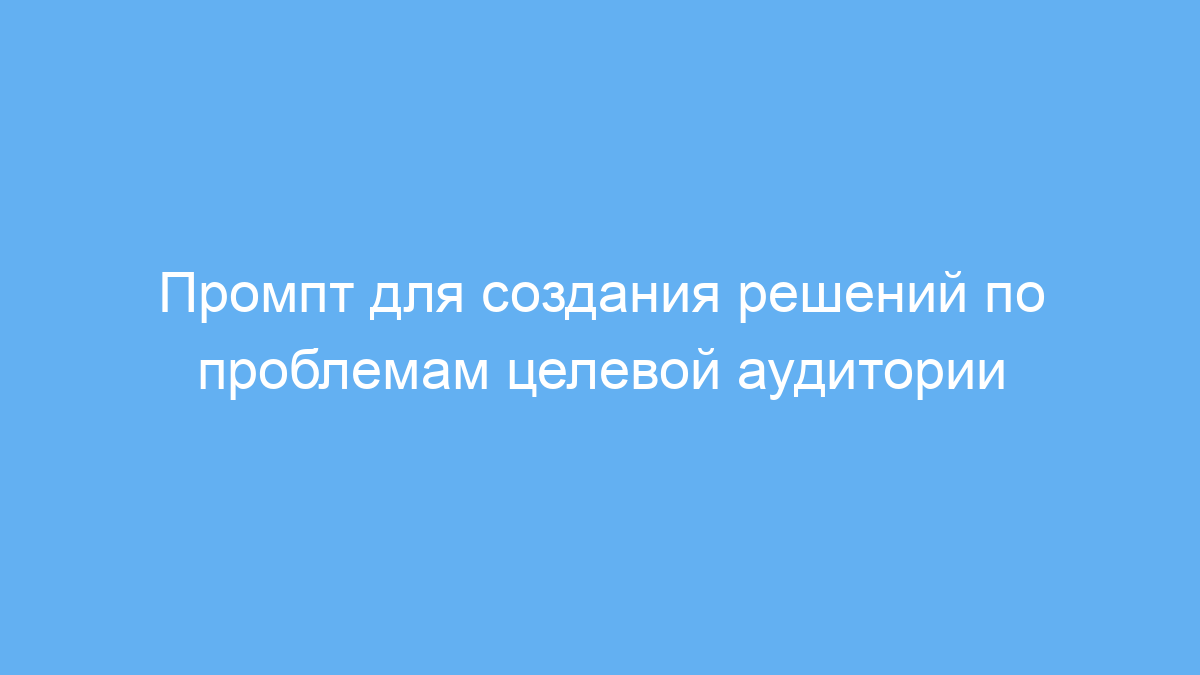 Используйте промпт, заменяя placeholders (#) на конкретные проблемы и описание целевой аудитории. Это можно делать в текстовом редакторе перед отправкой в нейросеть. Так вы получите максимально релевантные и полезные варианты.