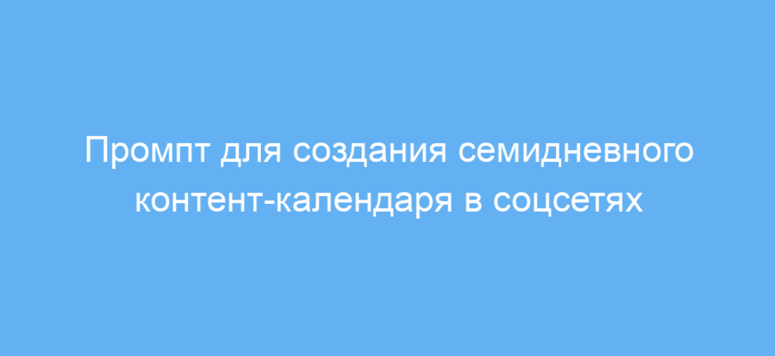 Этот промпт предназначен для специалистов по маркетингу, SMM-менеджеров, владельцев бизнеса и маркетологов, которые хотят системно планировать публикации в социальных сетях. Он помогает создать подробный контент-календарь на неделю, повышающий вовлечённость аудитории, информирующий о продуктах и обучающий подписчиков.