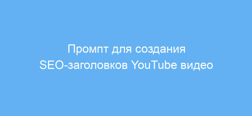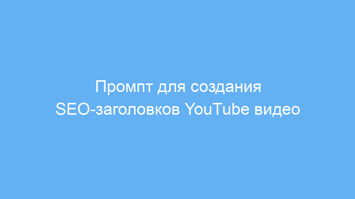Промпт решает задачу генерации эффективных заголовков, учитывая тематику канала и содержание конкретного видео. Он работает исходя из информации, которую вы предоставляете: сначала изучает специфику вашего канала, затем содержание видео и идеи по заголовку, после чего генерирует готовые SEO-заголовки.